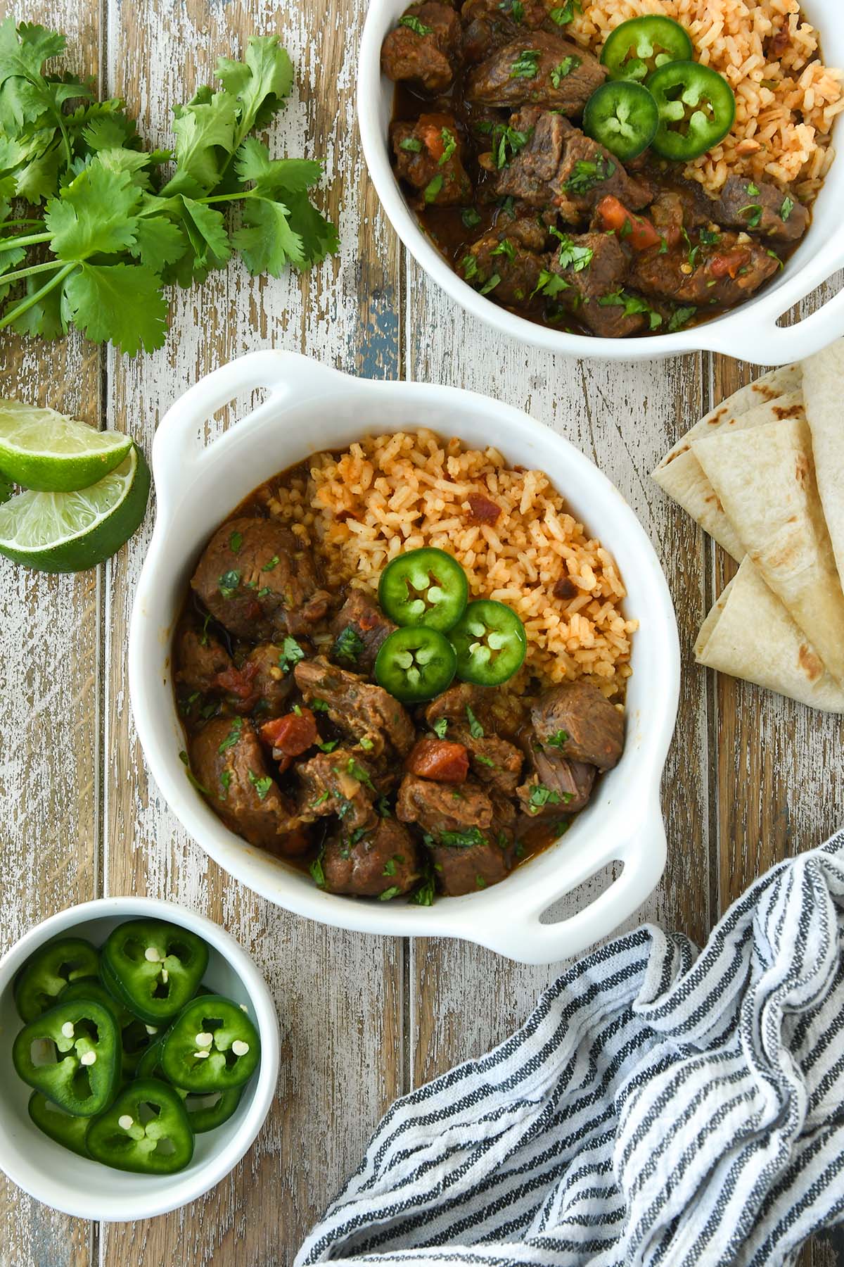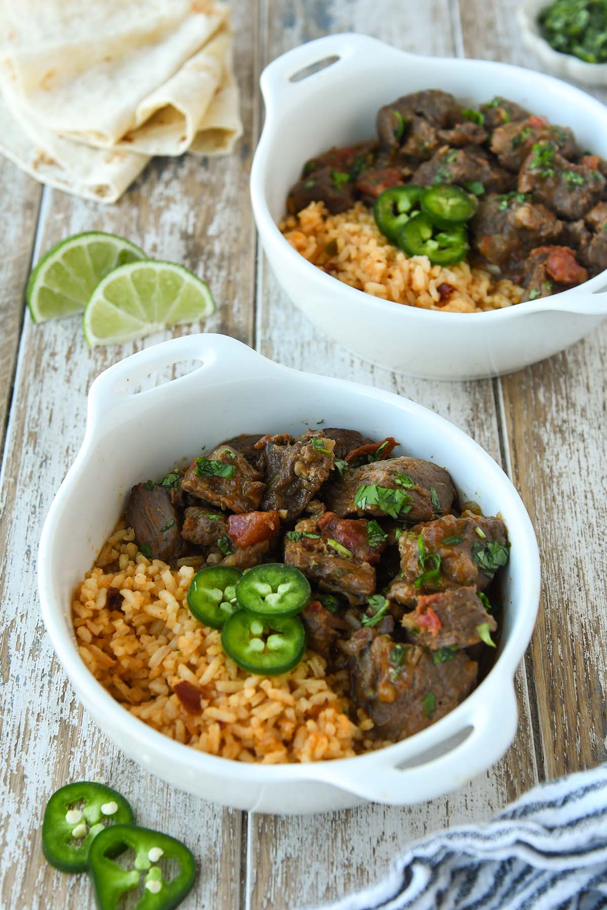 Comforting Carne Guisada is a Tex Mex beef stew that is full of melt-in-your-mouth beef chunks and spices all in a savory gravy. The sauce is deep and velvety, it’s the perfect balance of flavor and spiciness from the jalapenos and seranos. Serve with tortillas to scoop up the flavorful beef and rich gravy.